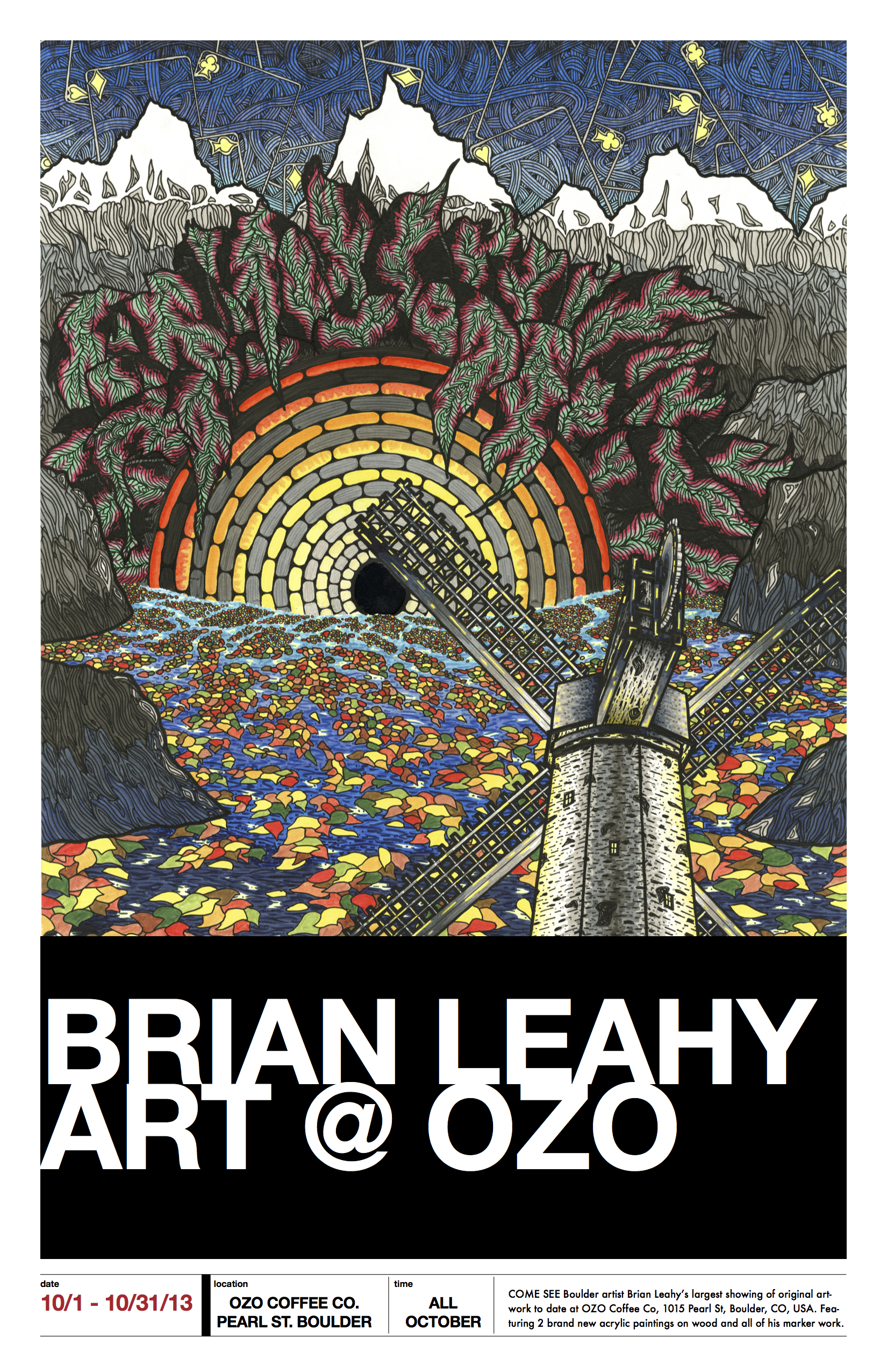 From October 1 – 31st, 2013, my art will be hanging at OZO Coffee Co., 1015 Pearl Street, Boulder, CO. It will be my largest showing of originals to date, as well as the debut of two new large scale acrylic paintings on wood.
